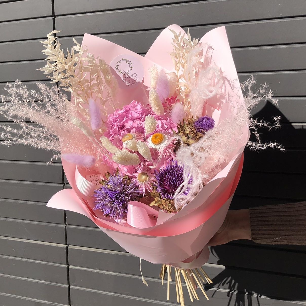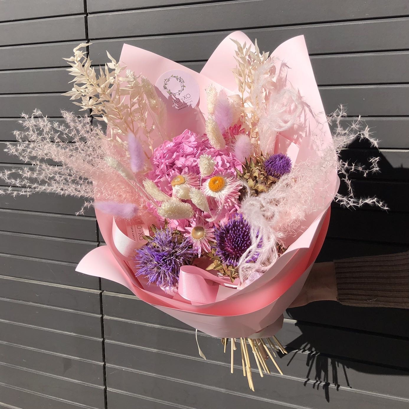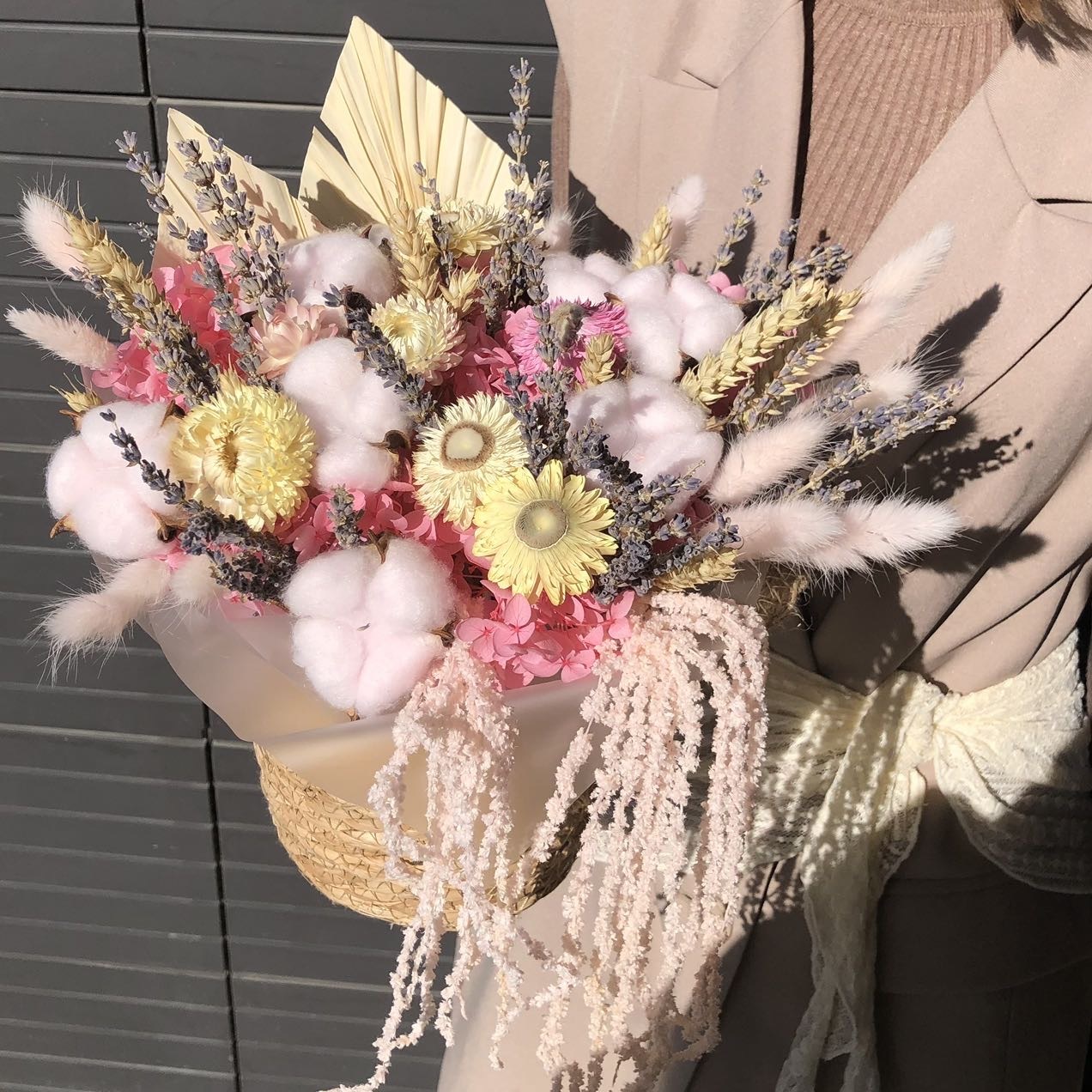 Оригинальный вариант букета из сухоцветов. В составе стабилизированные розы, которые будут радовать вас 2-4 года. Цвет роз можно выбрать любой по предзаказу за 10-14 дней.