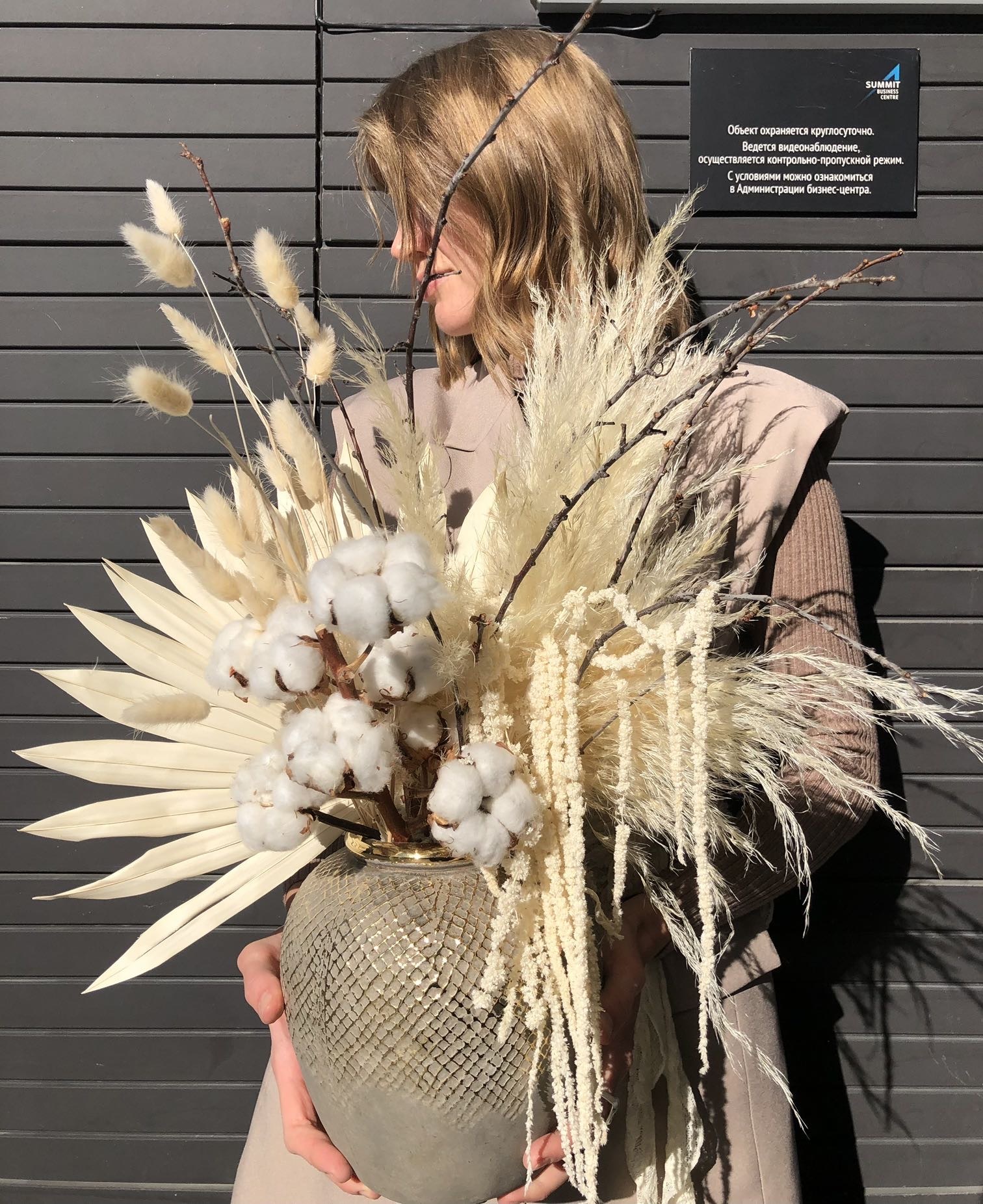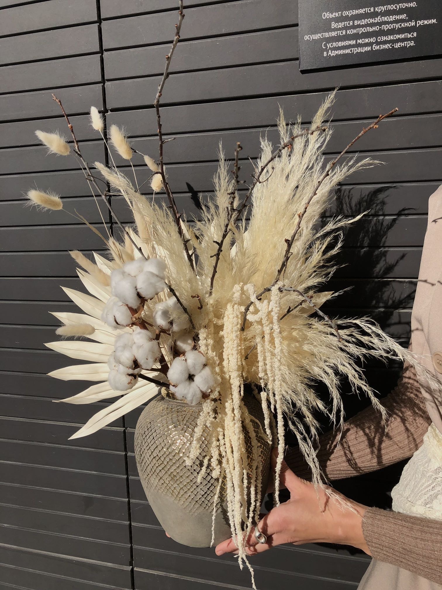 Интерьерная композиция из сухоцветов. Стоимость без учета вазы. Цена за 1 штуку - от 1800 до 2000р.